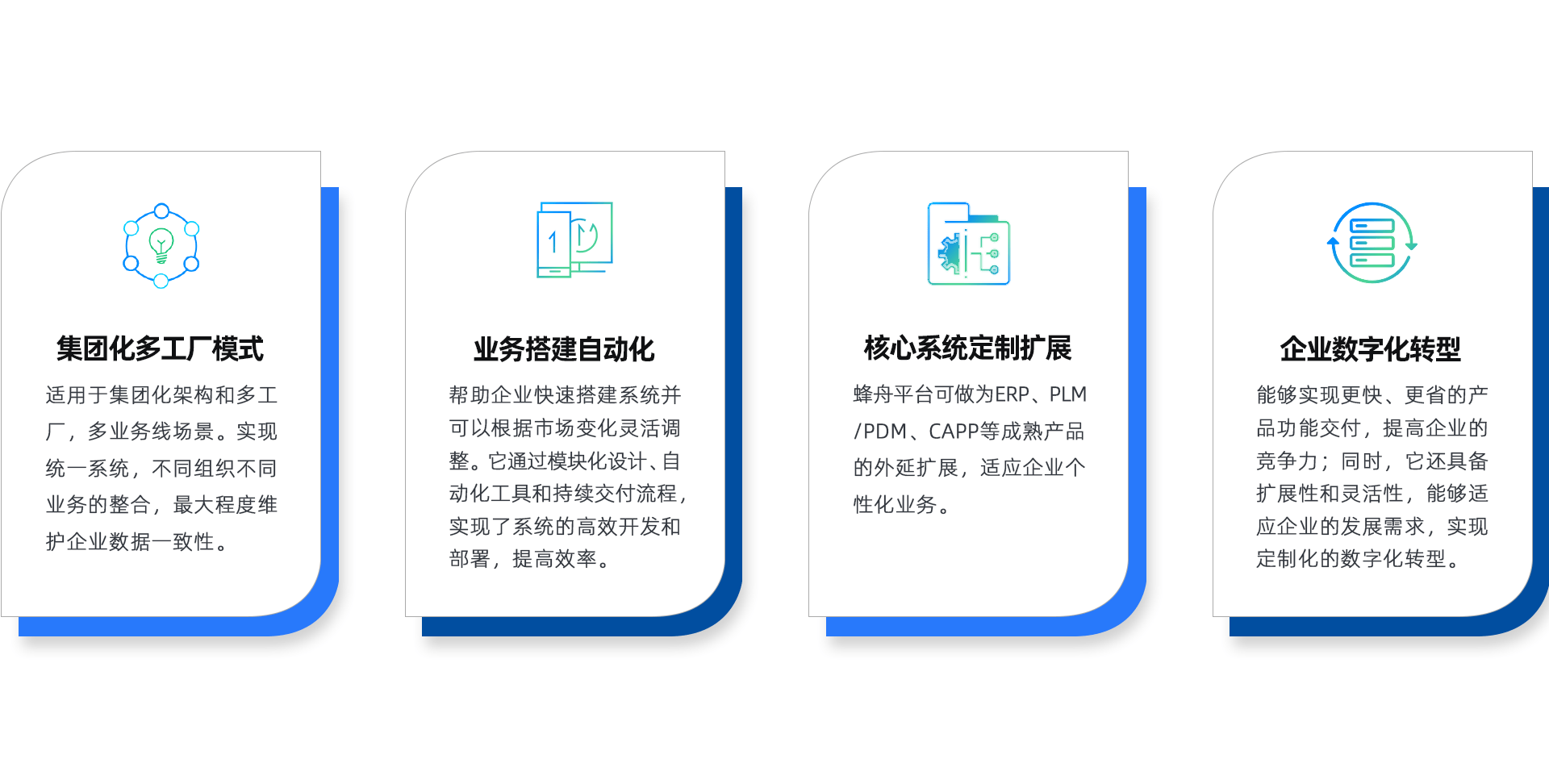 面向应用开发者,提供应用功能规划、设计、开发、测试、运维全面支撑的工具化平台和效能管理平台,利用低代码技术快速构建个性化应用,为企业数字化转型快速赋能。沉淀开发工具和标准模型组件,减少重复低价值开发工作;结合业务平台的底层框架封装,屏蔽技术复杂度;完整的开发运维一体化系统,确保开发规范落地和高效交付;国产化适配,摆脱工业软件卡脖子问题。