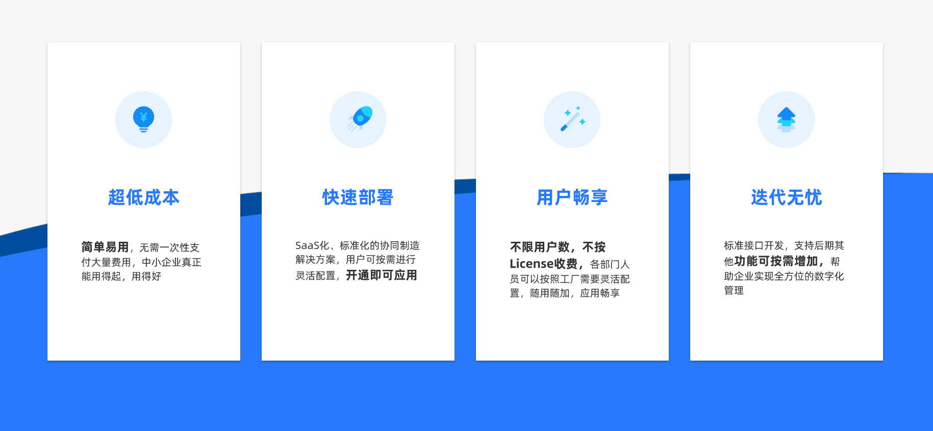 天翼智云 —— 机械加工为主的装备制造及零部件加工企业的SaaS化协同制造管理应用,实现从订单开始-订单准备-订单生产-订单交付的数字化协同,打破数据孤岛,建立基于订单为核心的涉及销售、计划、工艺、品质、生产、仓库各职能的数字化管理移动应用,助力中小微离散型制造企业实现管理升级。